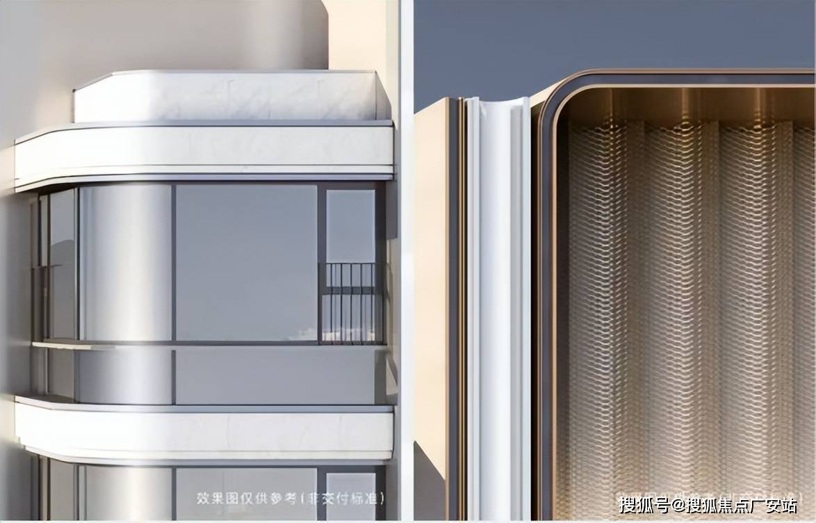 传承大华「年华系」精神符号!约66M幻彩铝板华之柱,材质采用米白层间仿石铝板、深灰色幻彩铝板点缀,同时以砖石切割的多层次古铜铝板演绎摩天气魄,并搭配不同视角、不同天气、不同光影下,可呈多色渐变的创新科技材料,赋予建筑摩登艺术气韵。